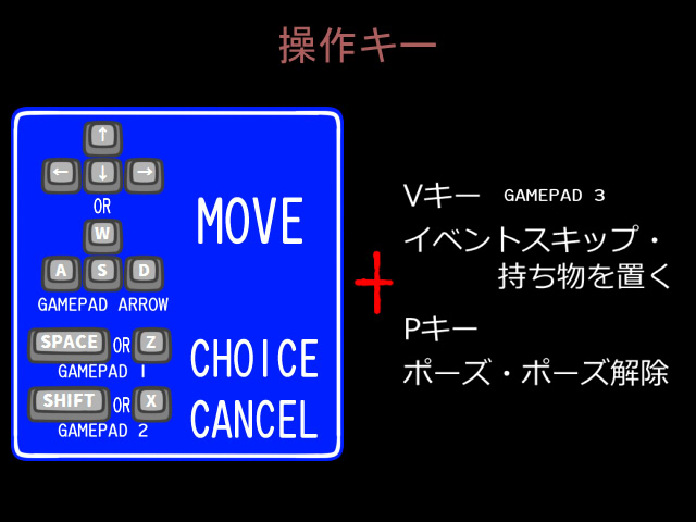 いずれの持ち物もVキーでその場に置ける。ダメージをくらうと持ち物はなくなってしまう。