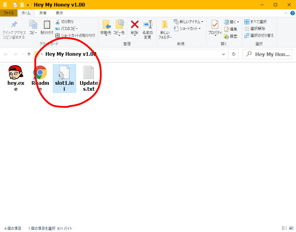 古いバージョンからセーブデータ(slot1.ini~slot3.ini)を引き継ぐ場合は、新しいバージョンの入ったフォルダ内に入れればOK。